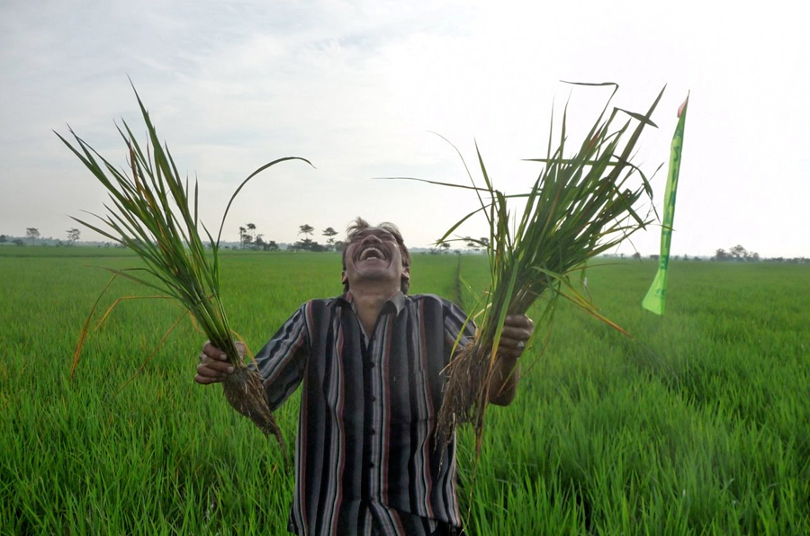Test Field (left) used standard NPK fertilizer program with AZOMITE® added at 20 kg/Ha (18 lbs/Acre) and produced taller broader leaves with a deep green color. Control Field (right) relied solely on standard fertilizer only and produced shorter, thin, yellowish leaves with noticably less vigor.