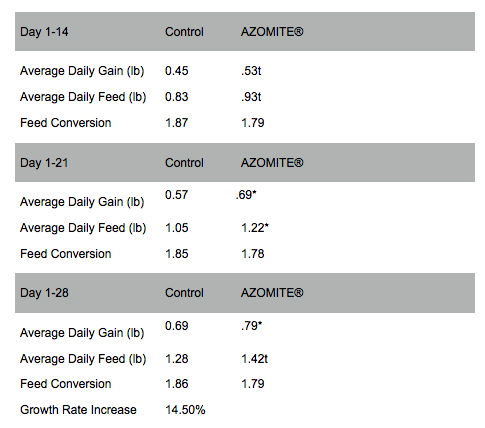 AZOMITE® was added at 0.5% to the control diet.